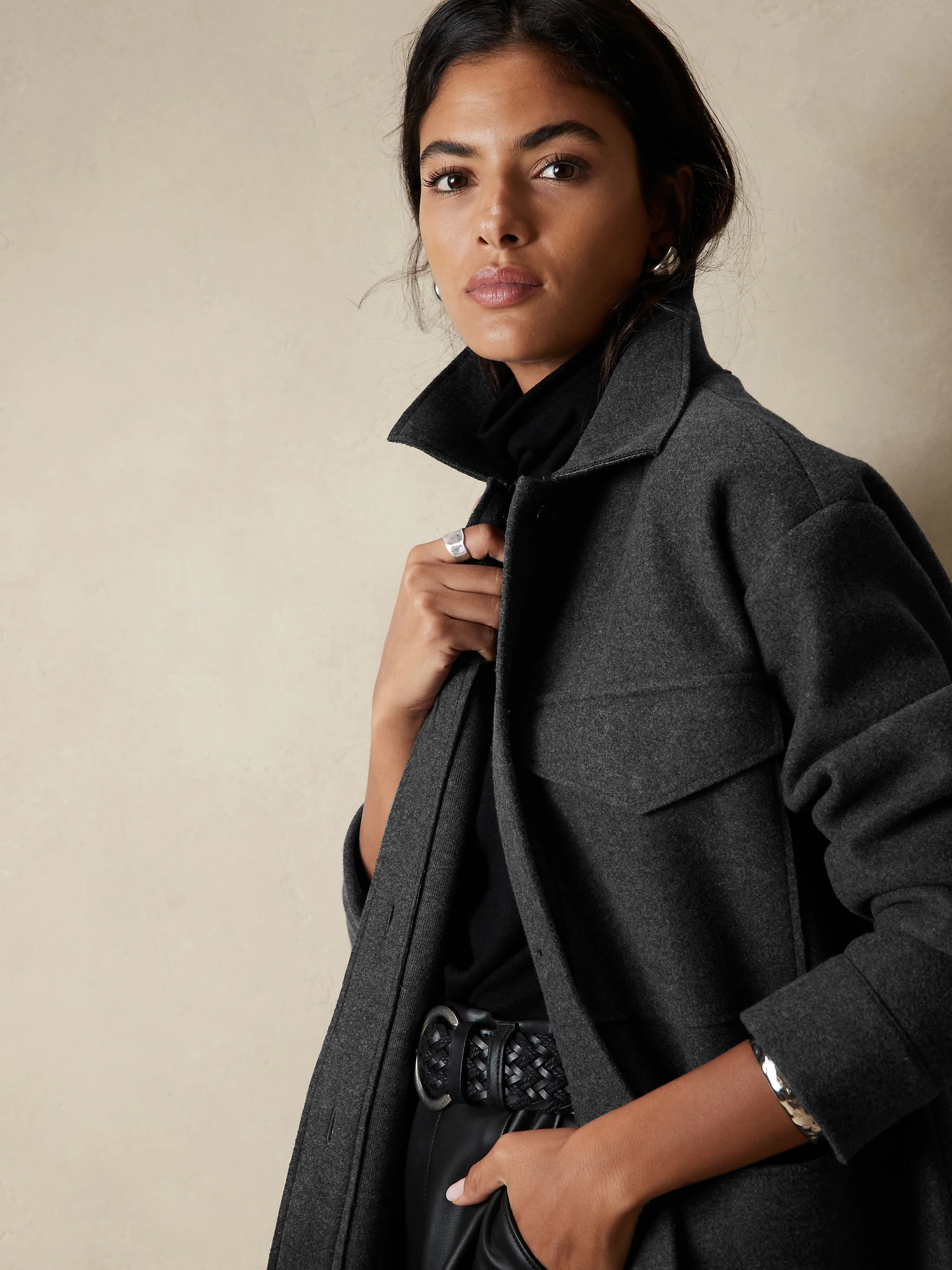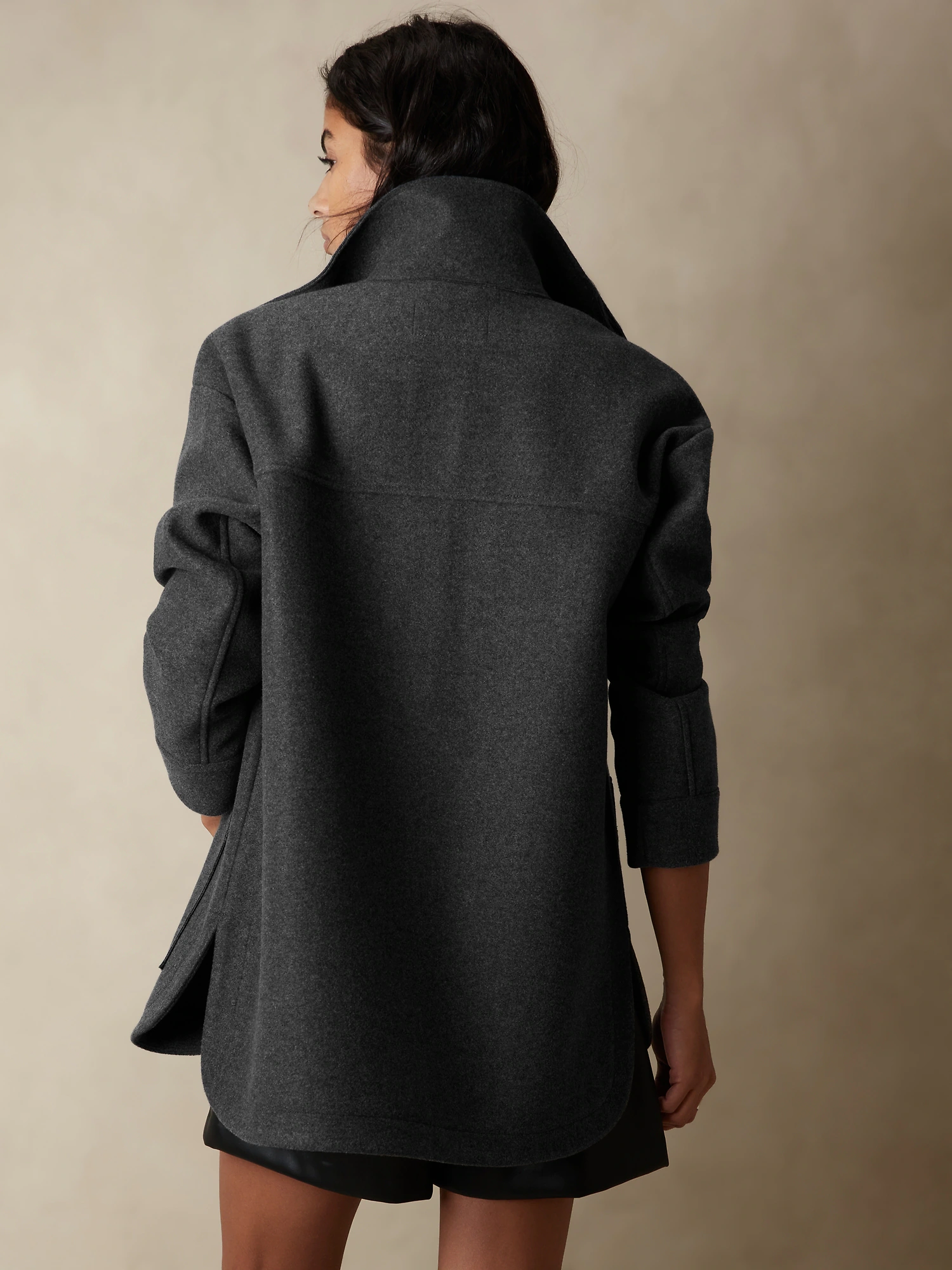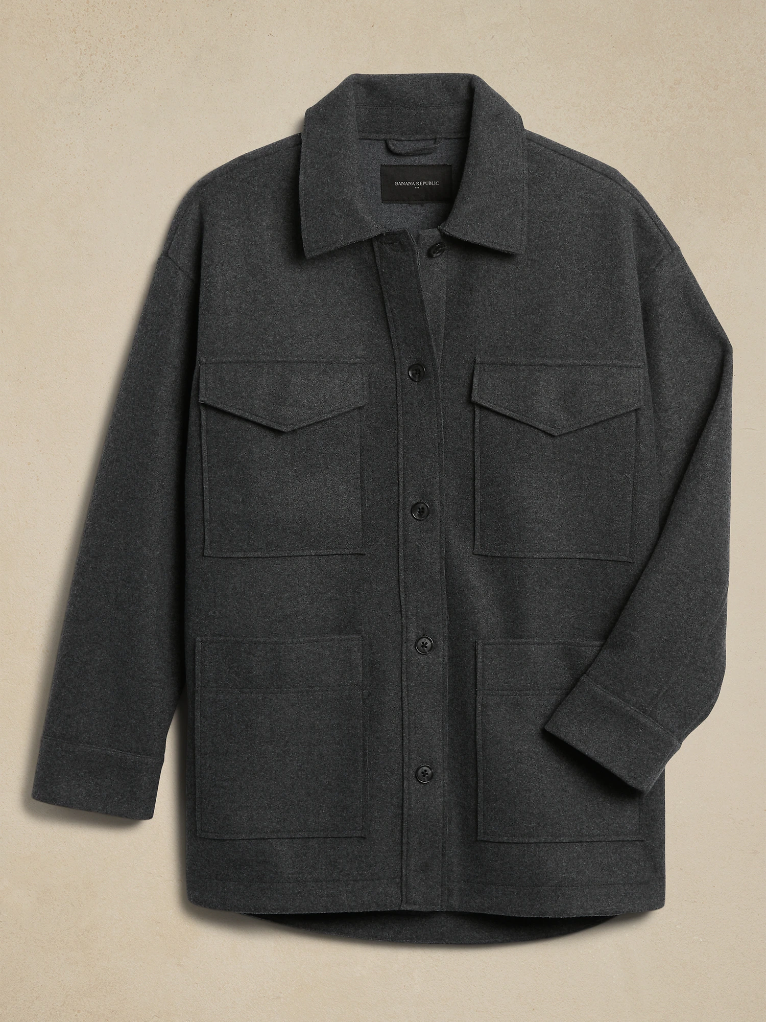 Cuello de punto, mangas largas, cierre frontal con botones.